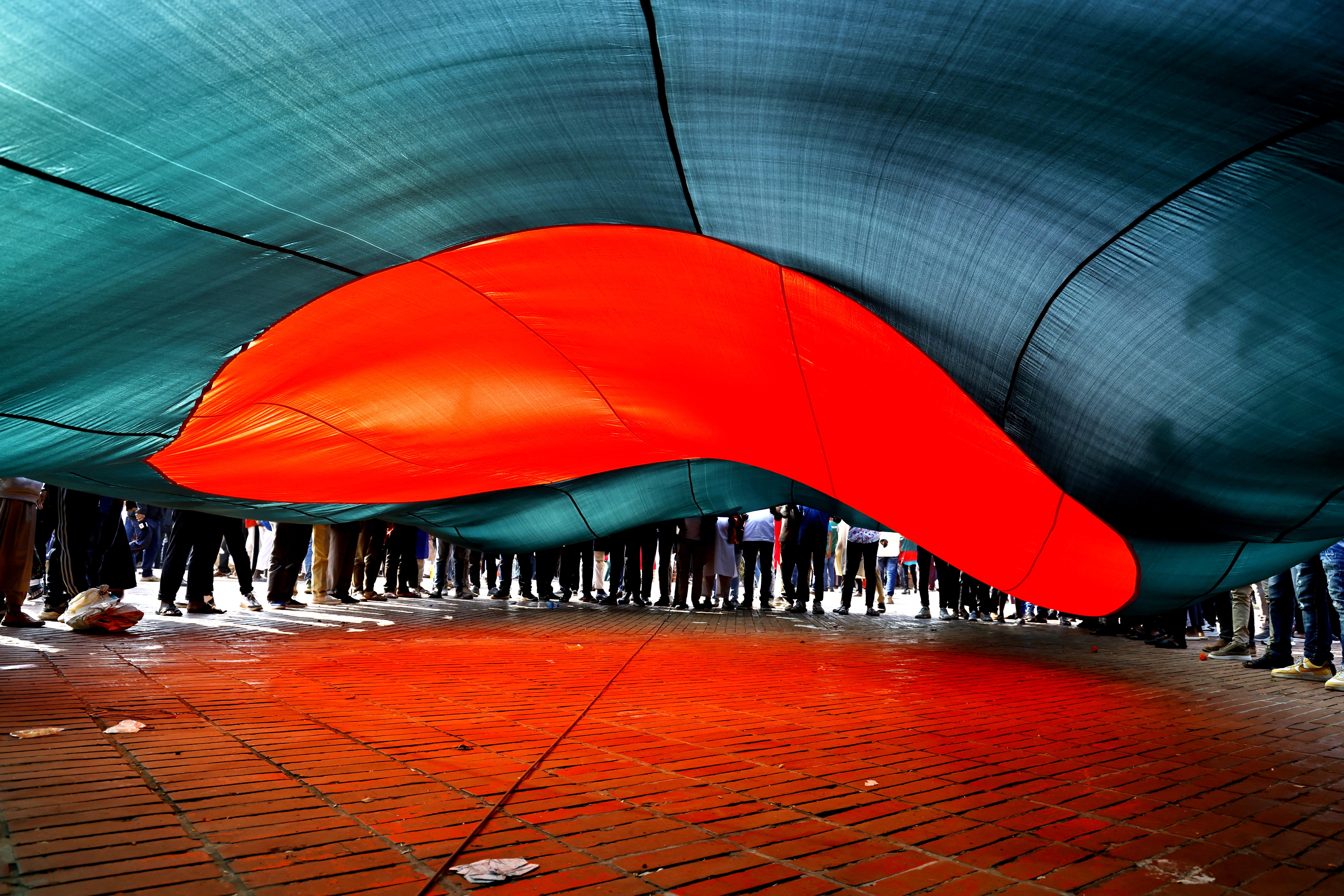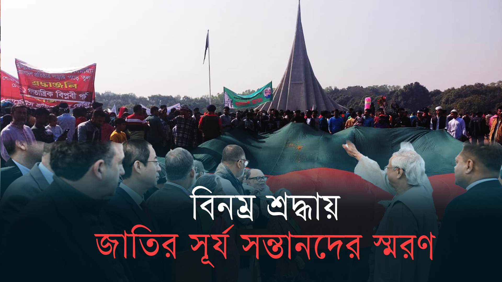 মহান বিজয় দিবস উপলক্ষে সাভার স্মৃতিসৌধে শহীদদের প্রতি বড় পতাকা প্রদর্শন করে শ্রদ্ধা জানানো হয়। ছবি: হারুন-অর-রশীদ