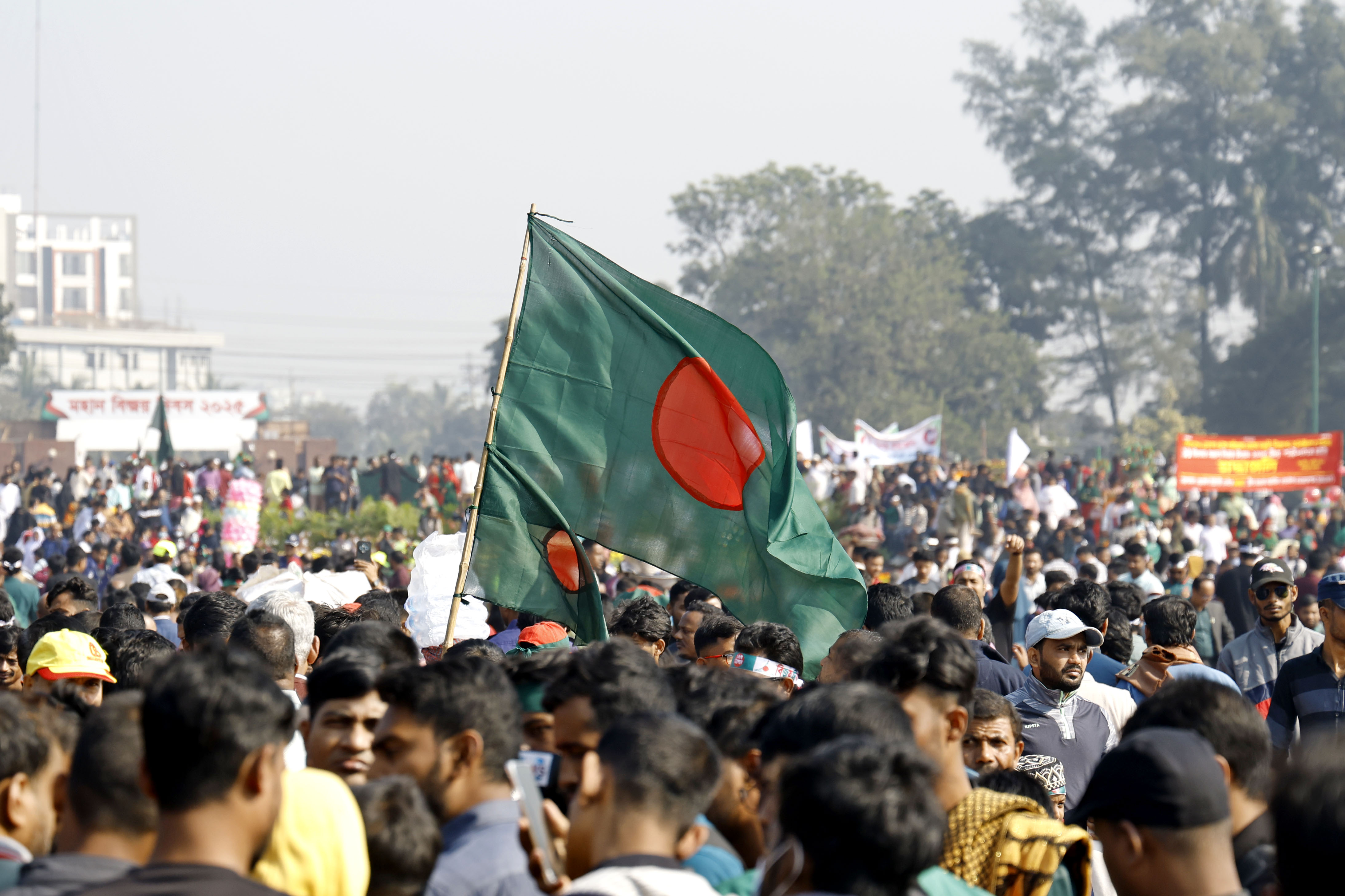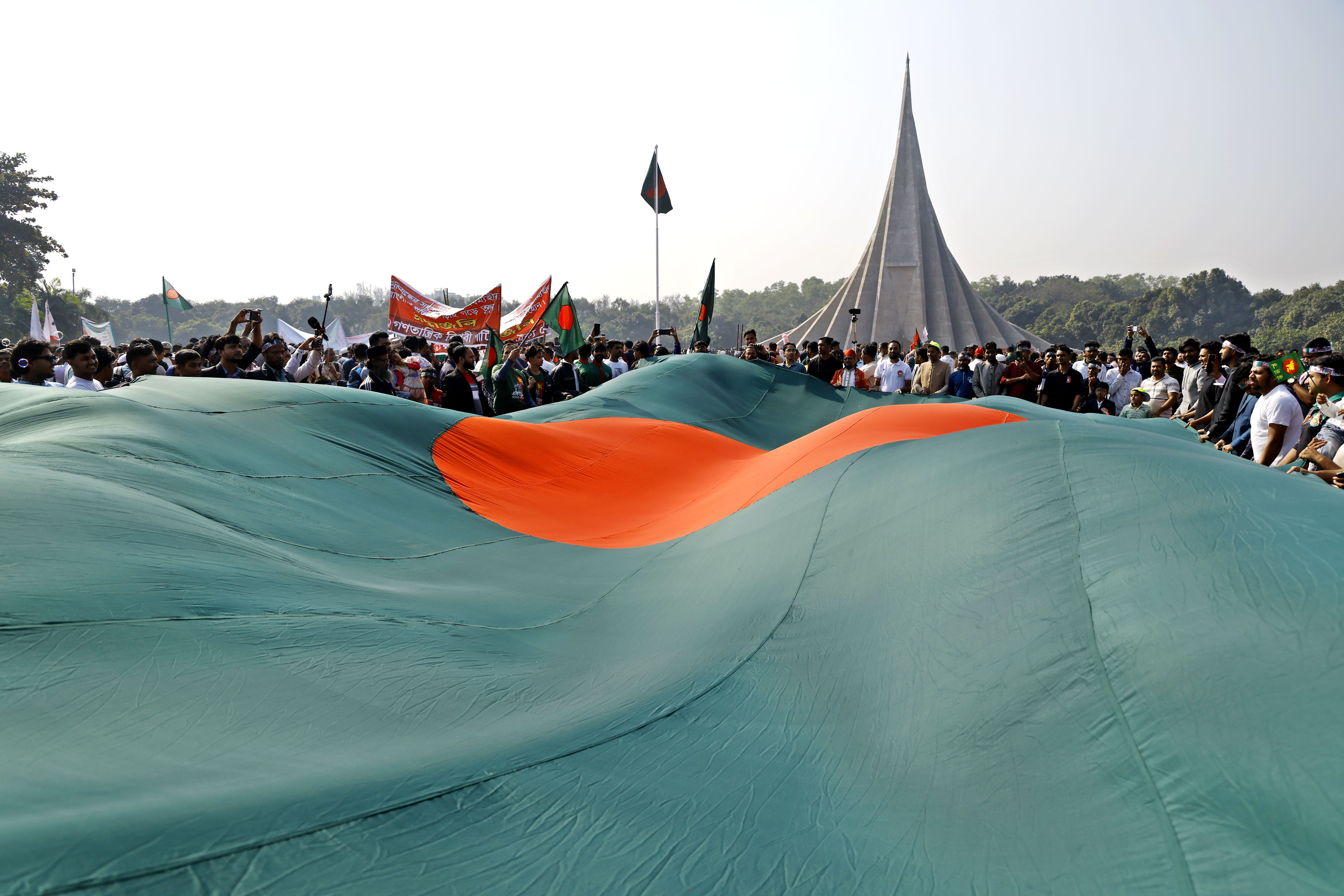 মহান বিজয় দিবস উপলক্ষে সাভার স্মৃতিসৌধে শহীদদের প্রতি বড় পতাকা প্রদর্শন করে শ্রদ্ধা জ্ঞাপন করা হয়। ছবি: হারুন-অর-রশীদ