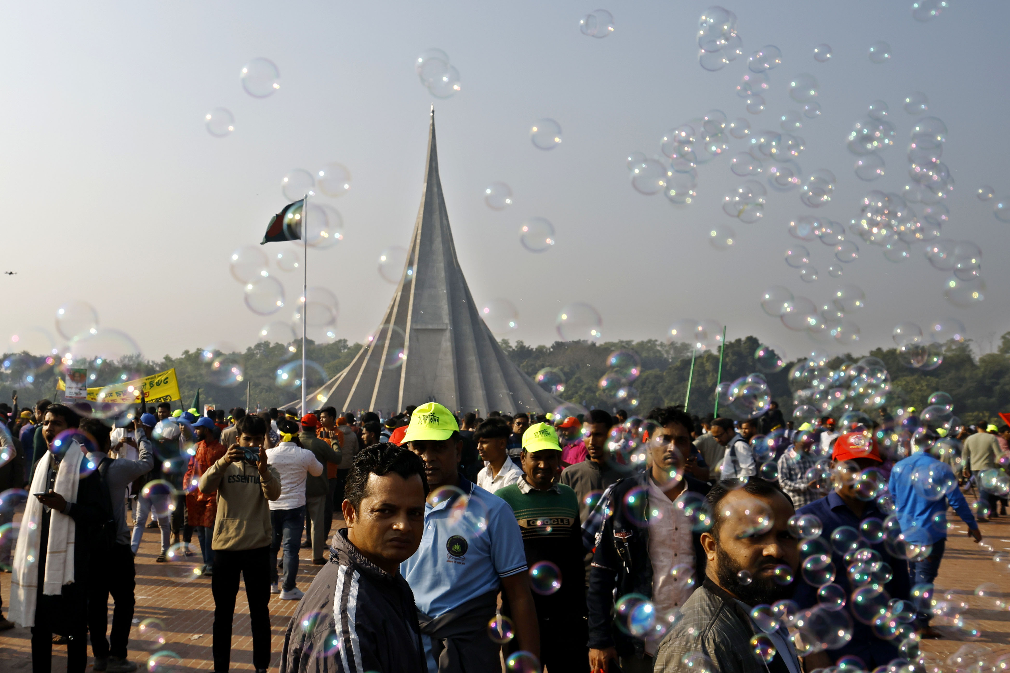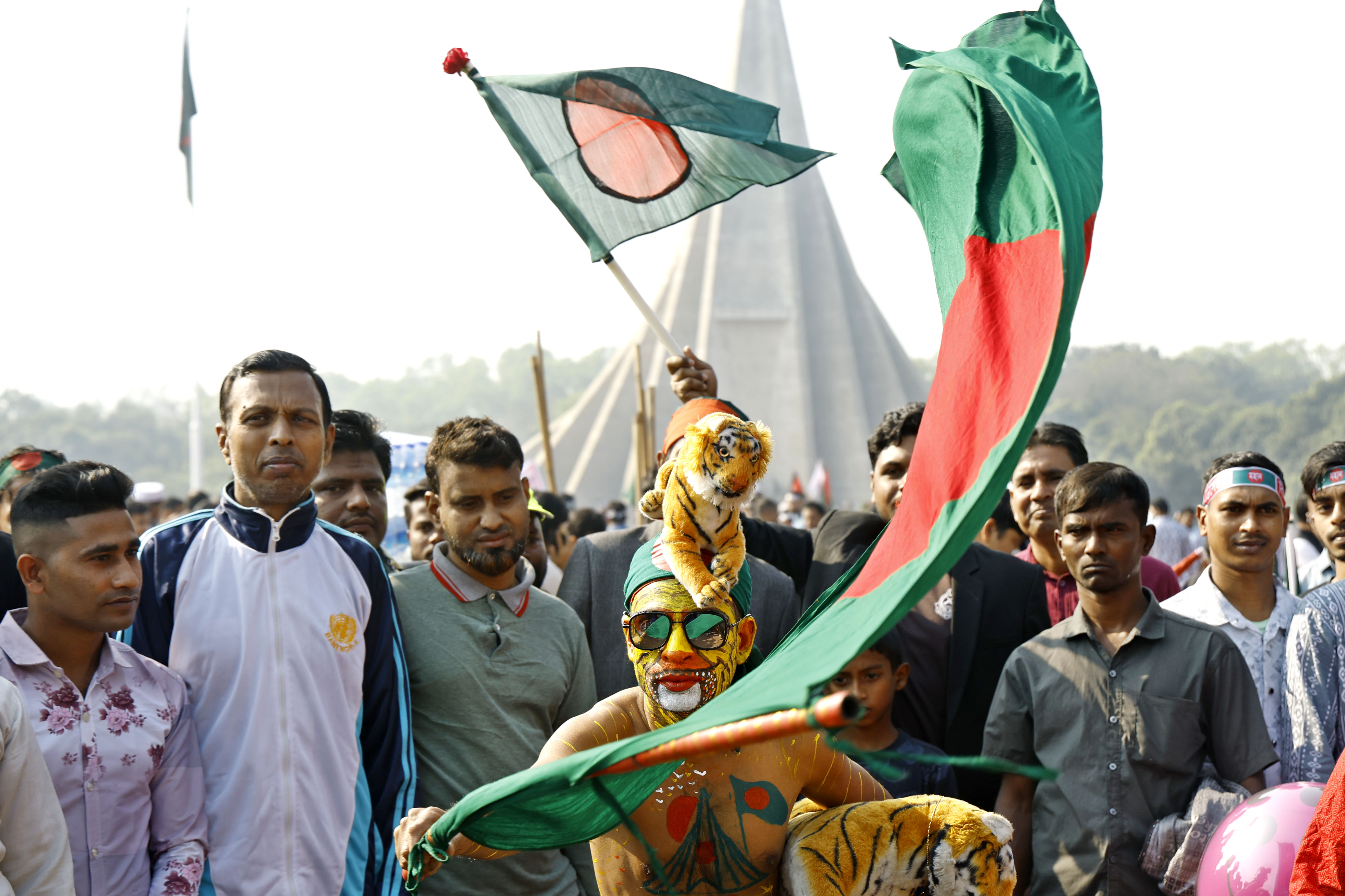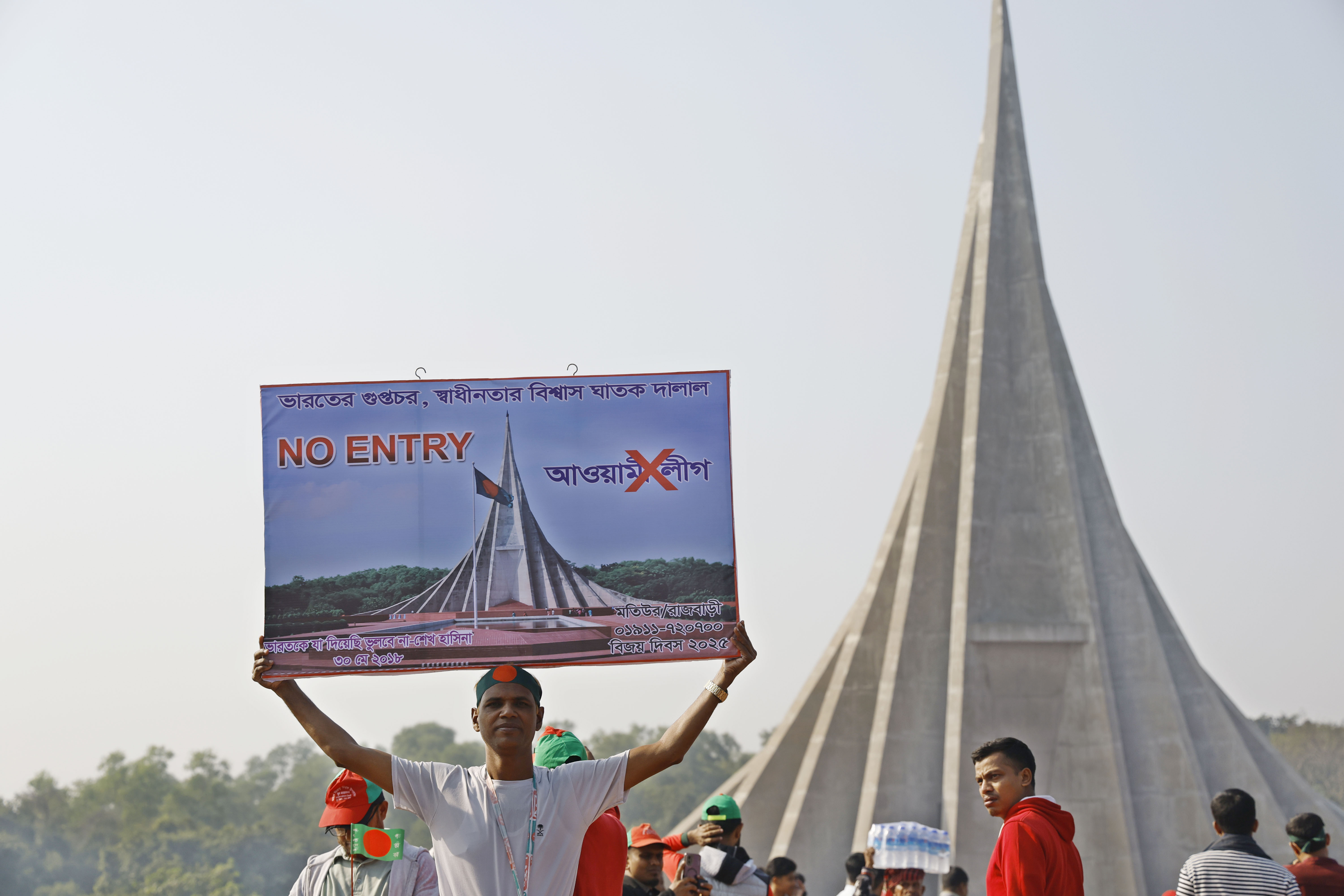 বিজয় দিবসে সাভার স্মৃতিসৌধে আওয়ামীলীগকে “ নো এন্ট্রি” লেখা একটি প্ল্যাকার্ড নিয়ে দাড়িয়ে থাকতে দেখা যায় একজনকে। ছবি: হারুন-অর-রশীদ