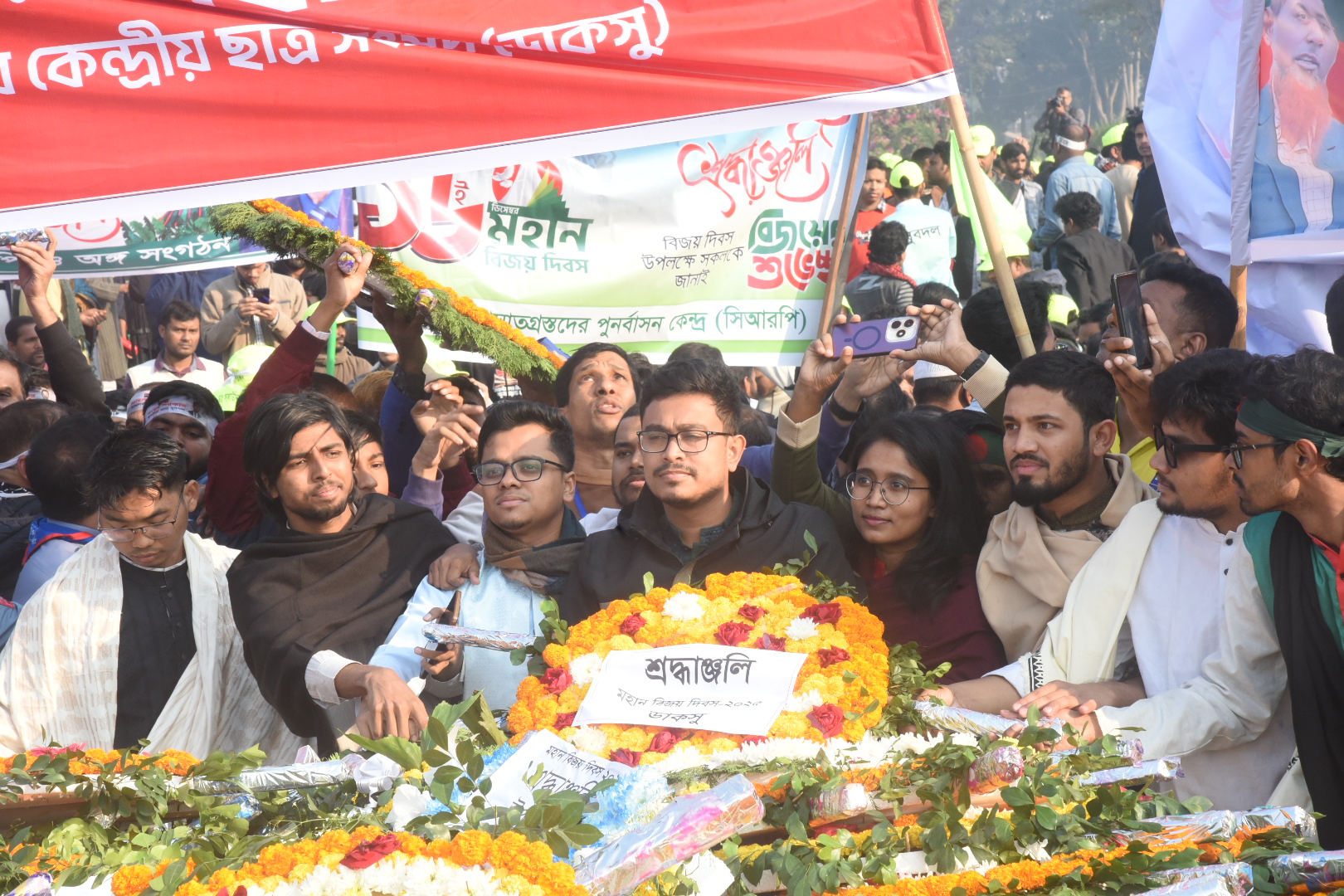 মহান বিজয় দিবস উপলক্ষে সাভার স্মৃতিসৌধে শহীদদের প্রতি শ্রদ্ধা জানায় ডাকসু নেতৃবৃন্দ। ছবি: হারুন-অর-রশীদ