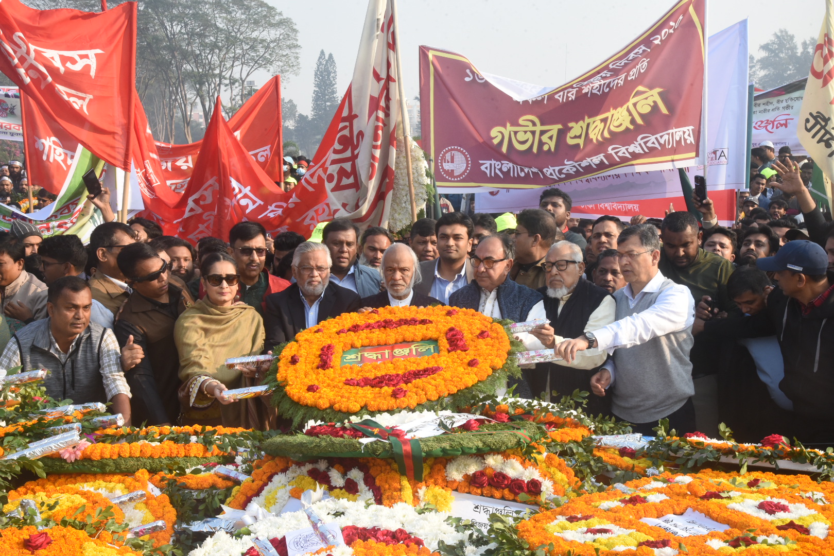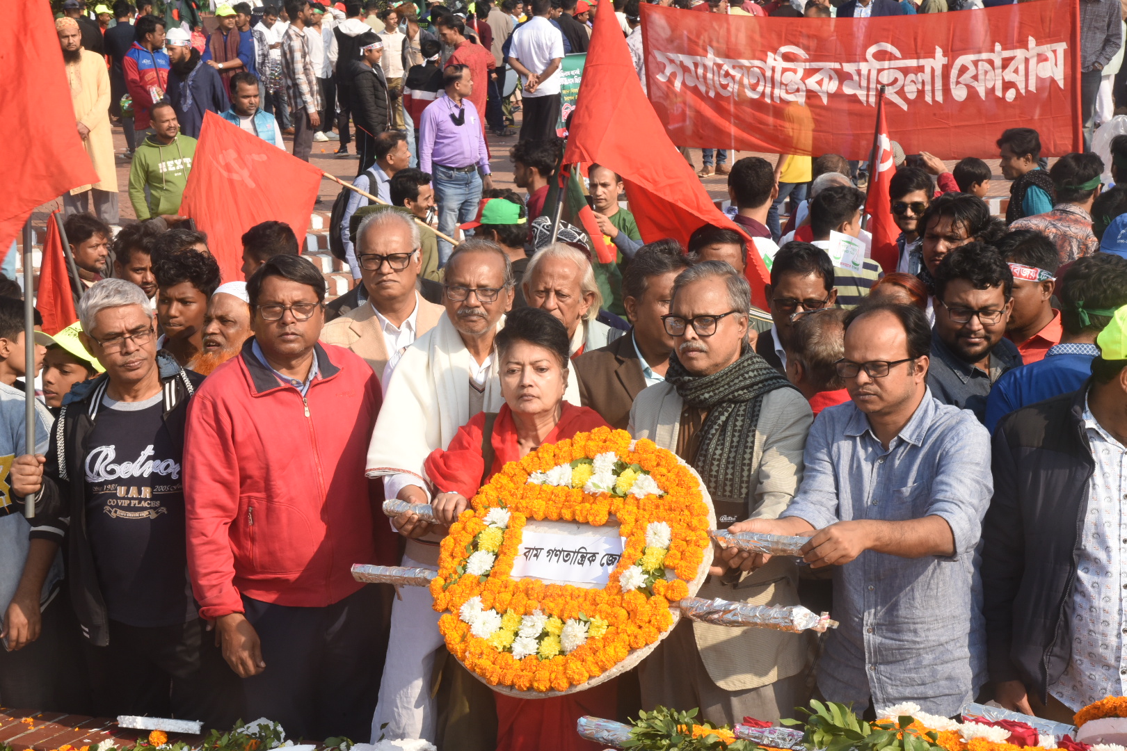মহান বিজয় দিবস উপলক্ষে সাভার স্মৃতিসৌধে শহীদদের প্রতি শ্রদ্ধা জানায় বাম গণতান্ত্রীক জোট। ছবি: হারুন-অর-রশীদ