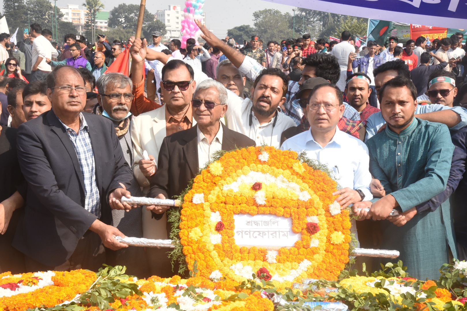 মহান বিজয় দিবস উপলক্ষে সাভার স্মৃতিসৌধে শহীদদের প্রতি শ্রদ্ধা জানায় গণফোরাম। ছবি: হারুন-অর-রশীদ
