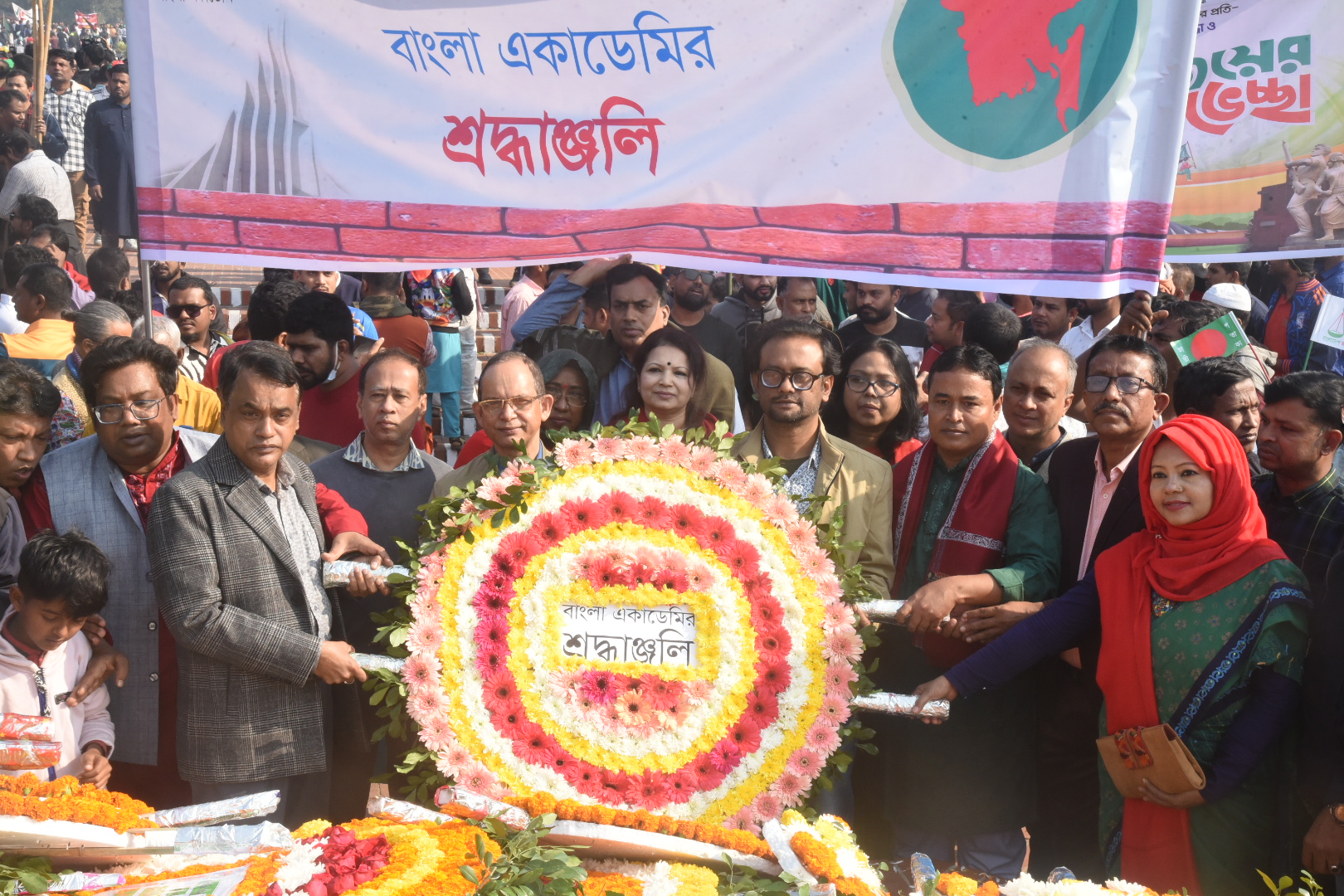 মহান বিজয় দিবস উপলক্ষে সাভার স্মৃতিসৌধে শহীদদের প্রতি শ্রদ্ধা জানায় বাংলা একাডেমি। ছবি: হারুন-অর-রশীদ