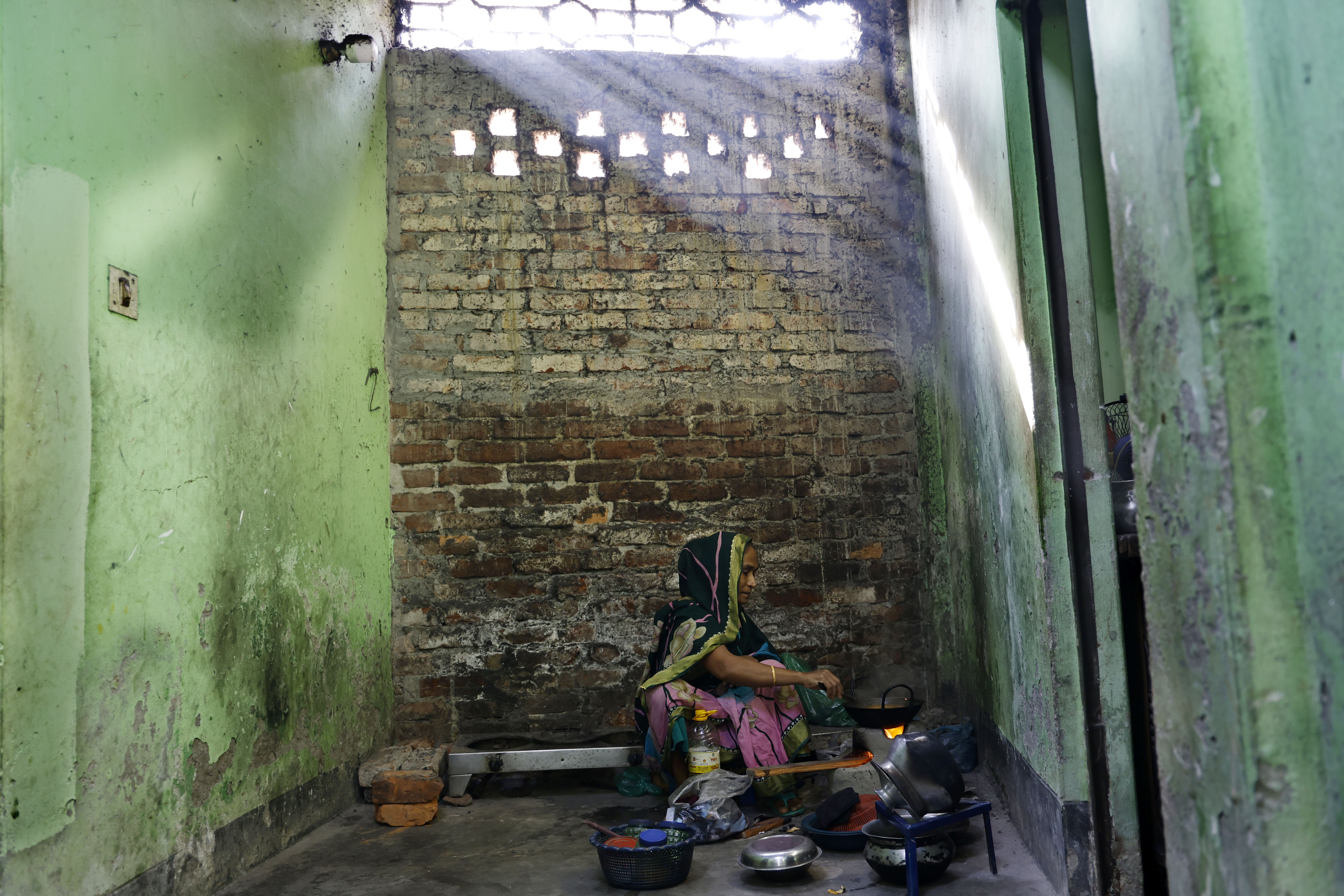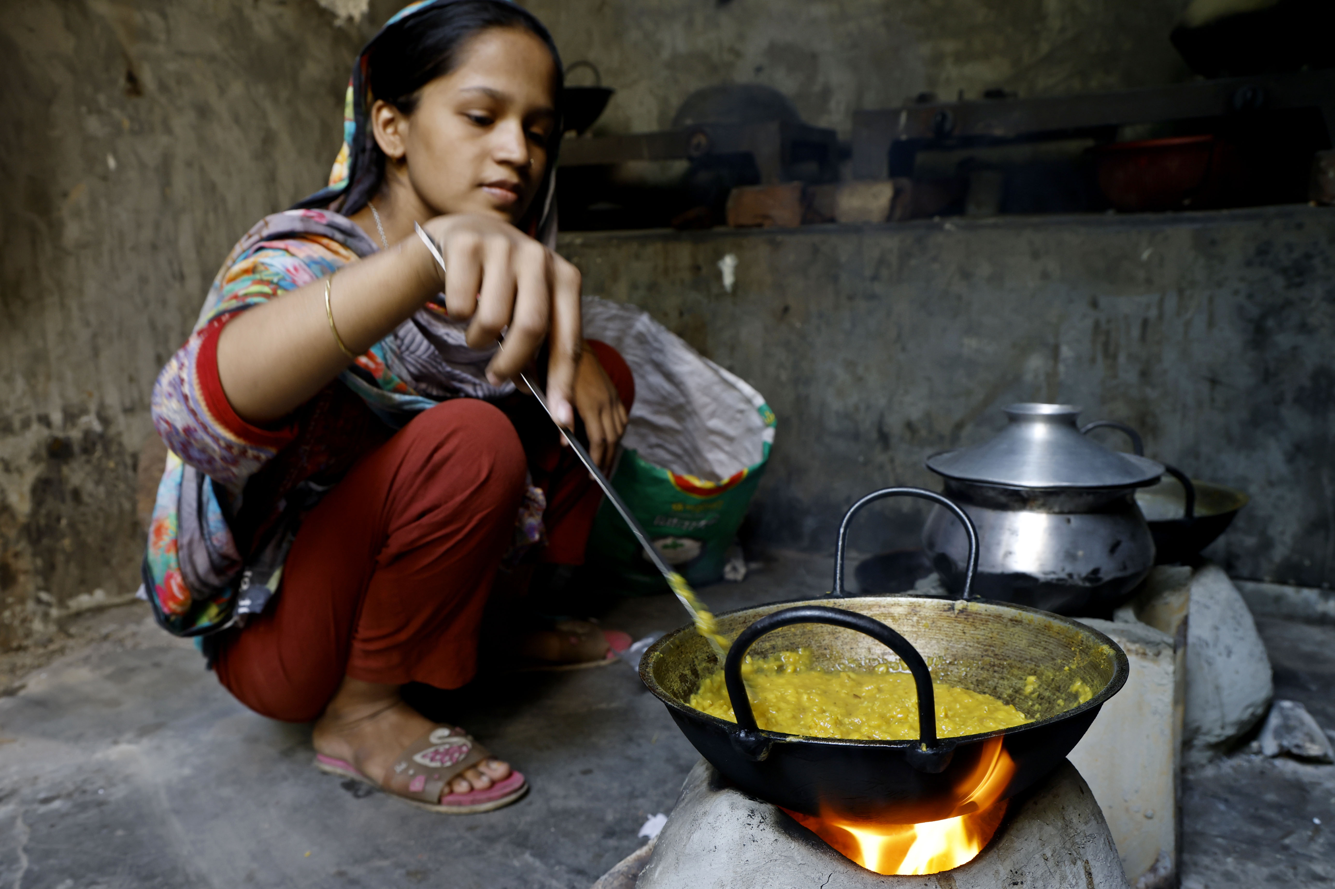 সিলিন্ডারের দাম বেশী হওয়ায় মাটির চুলায় রান্না করতে হয় তাদের । ছবি: হারুন-অর-রশীদ