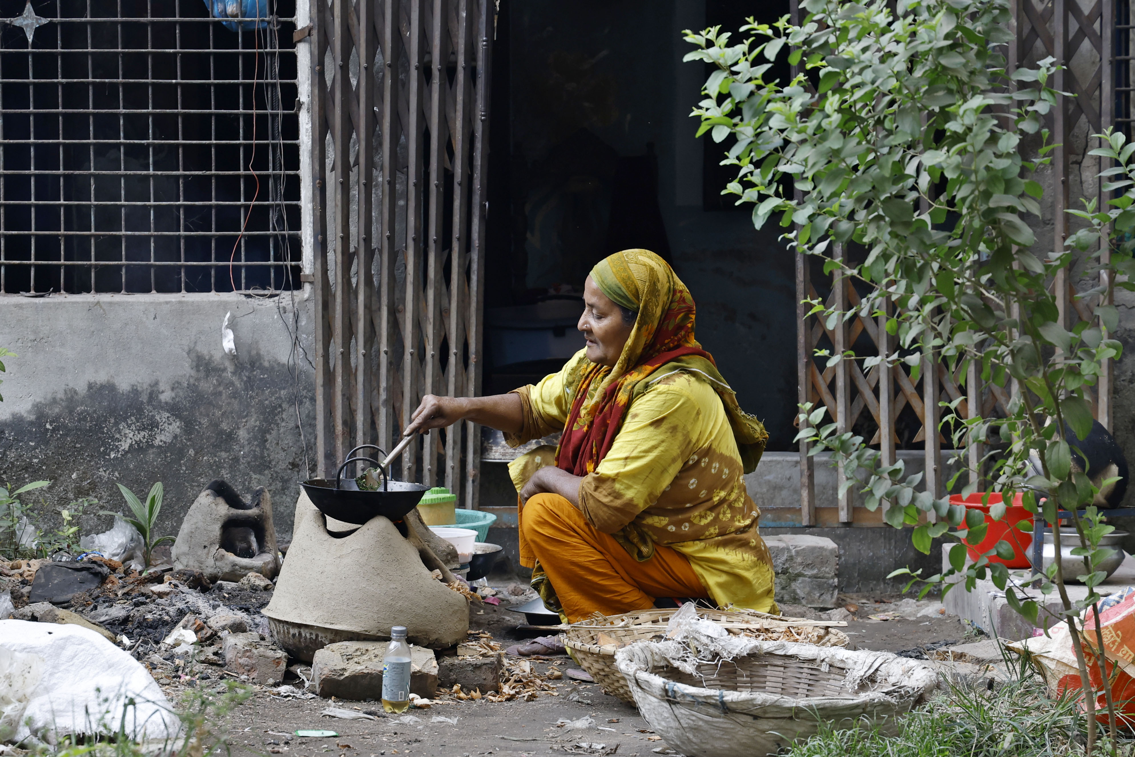রাজধানীর শনির আখড়ার শেখদি এলাকায় গ্যাস সংকট দীর্ঘ দিনের। বাড়ির পাশেই মাটির চুলায় রান্না করতে হয় তাদের। ছবি: হারুন-অর-রশীদ