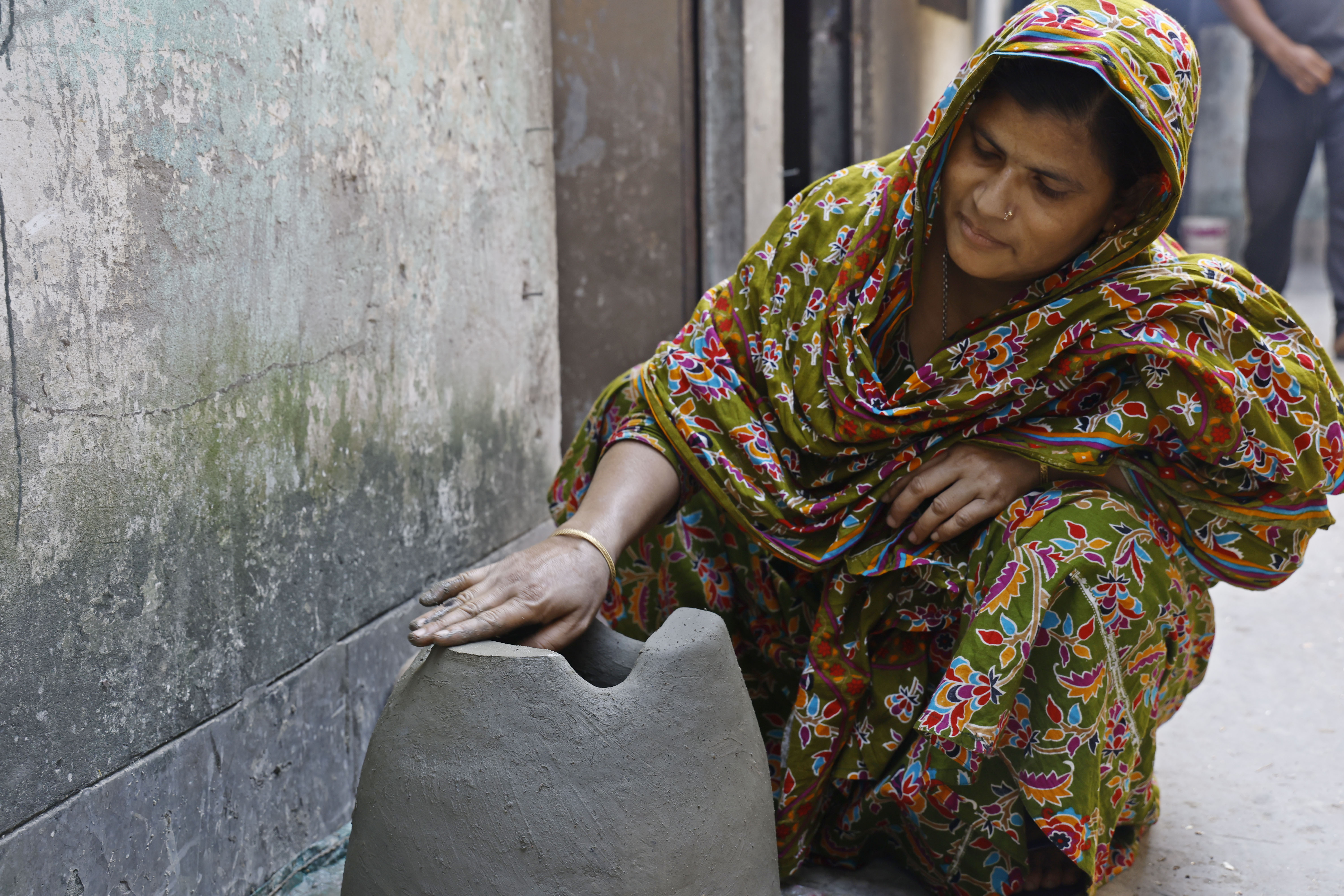 সিলিন্ডারের দাম বেশী হওয়ায় মাটির চুলায় রান্না করতে হয় তাদের। অনেক বাসিন্দাকে নিজ হাতে বানাতে দেখা যায় মাটির চুলা। ছবি: হারুন-অর-রশীদ