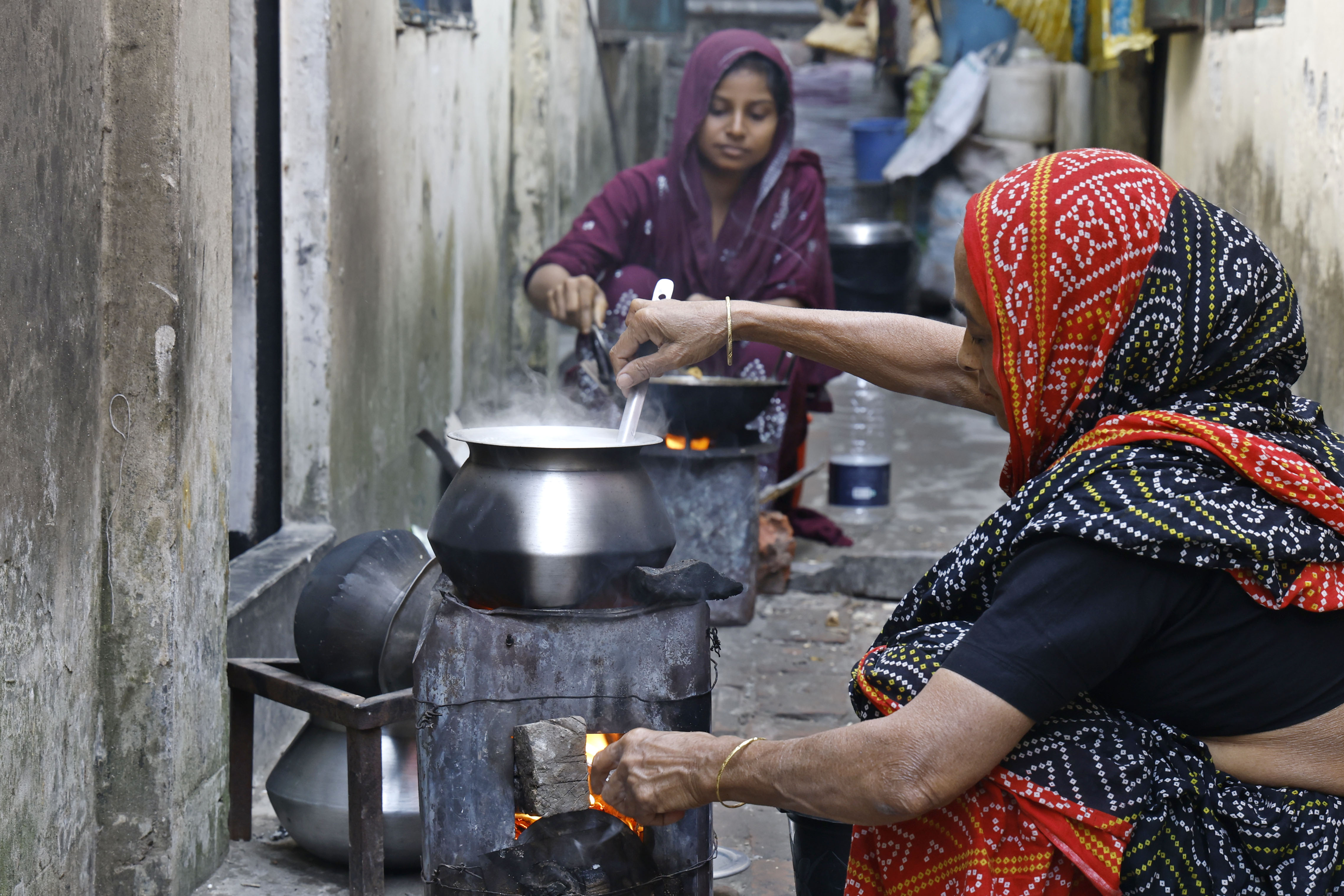 রাজধানীর শনির আখড়ার শেখদী এলাকায় গ্যাস সংকট দীর্ঘ দিনের। যে কারনে মাটির চুলায় রান্না করতে হয় এলাকাবাসীকে। ছবি: হারুন-অর-রশীদ