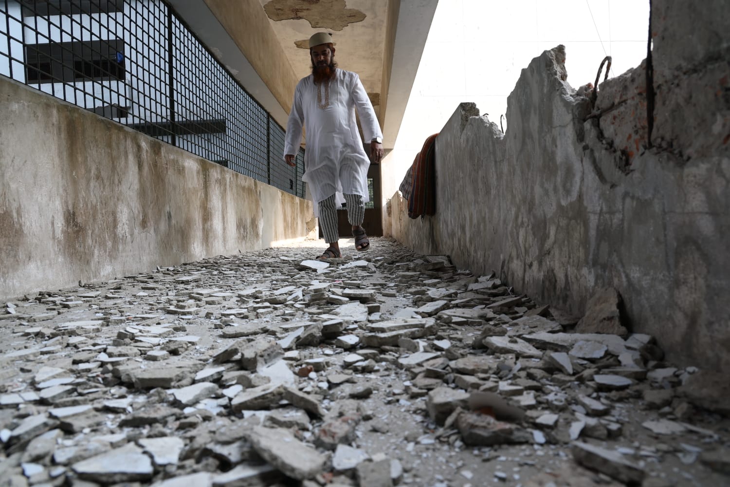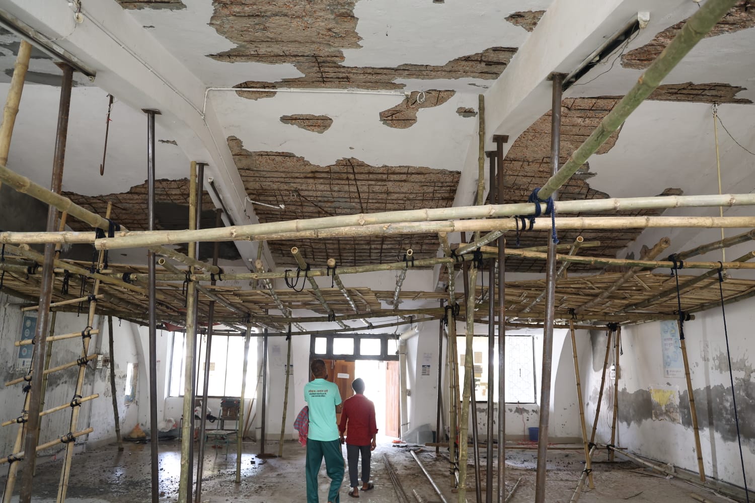ভূমিকম্পের পর ঢাকা বিশ্ববিদ্যালয়ের বিভিন্ন হলে চলছে সংস্কার কাজ। ছবি: হারুন-অর-রশিদ