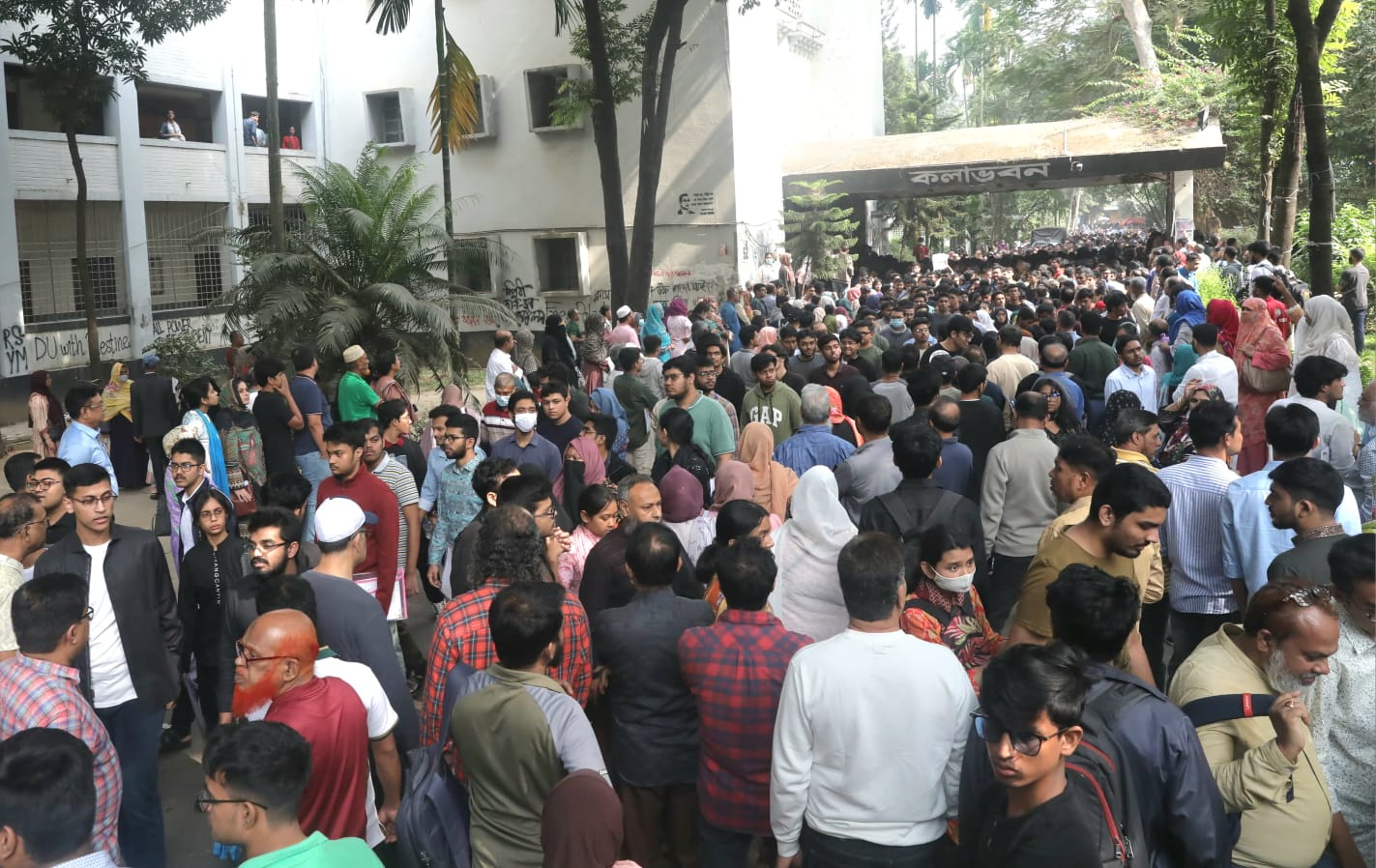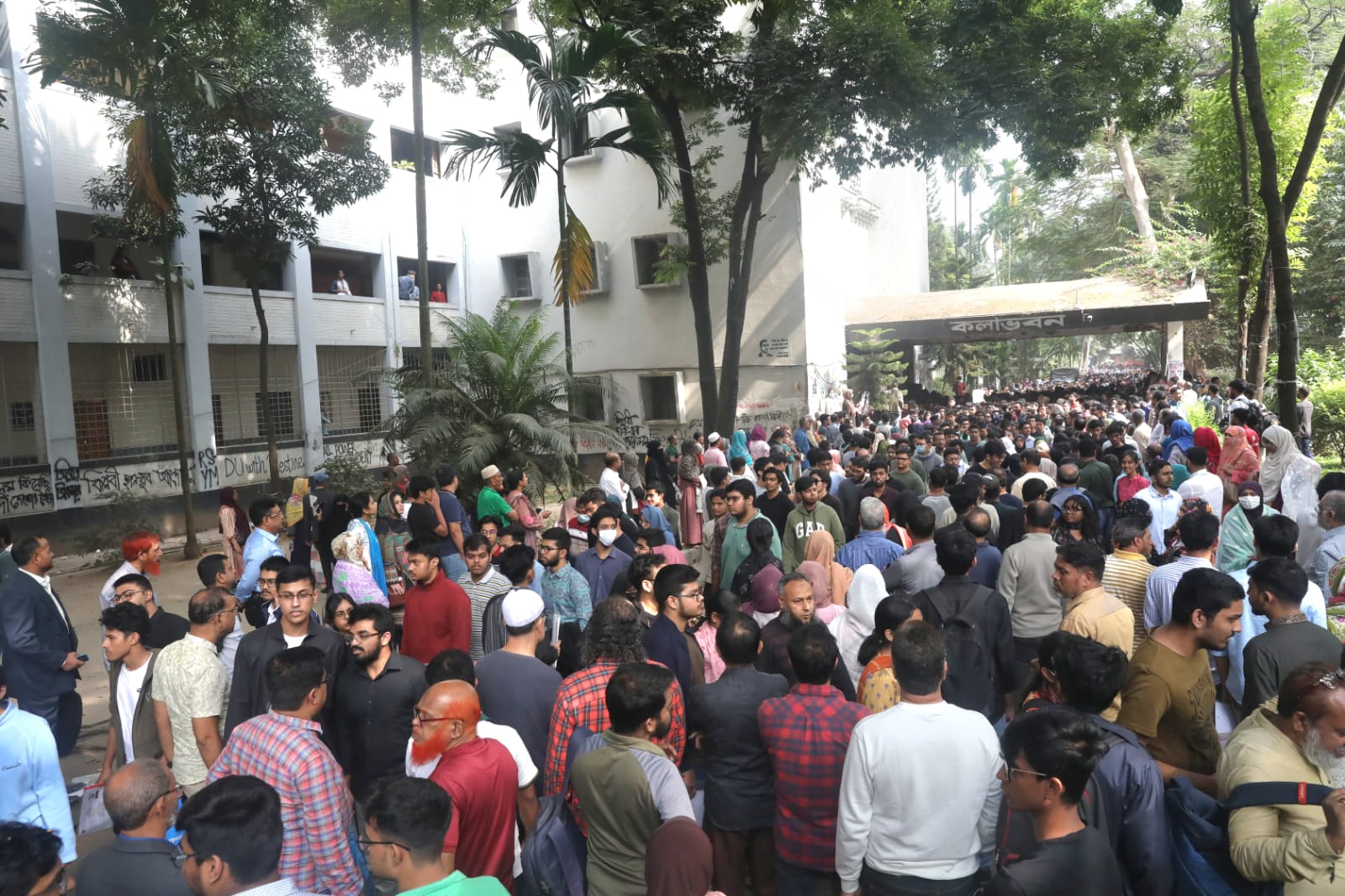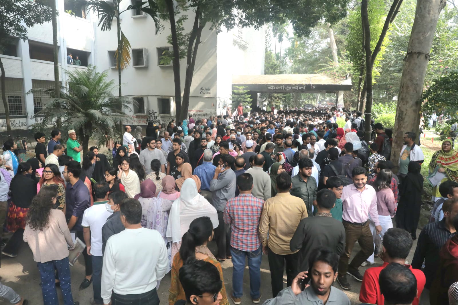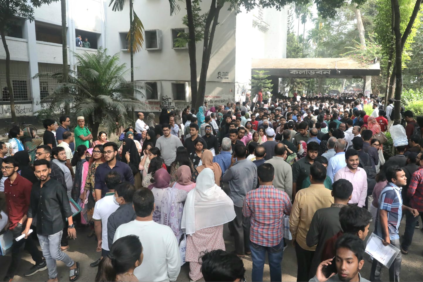 এবারের ভর্তি পরীক্ষা প্রতিযোগিতাকে আরও তীব্র করেছে। ছবিতে অভিভাবক ও শিক্ষার্থীদের ভিড়।