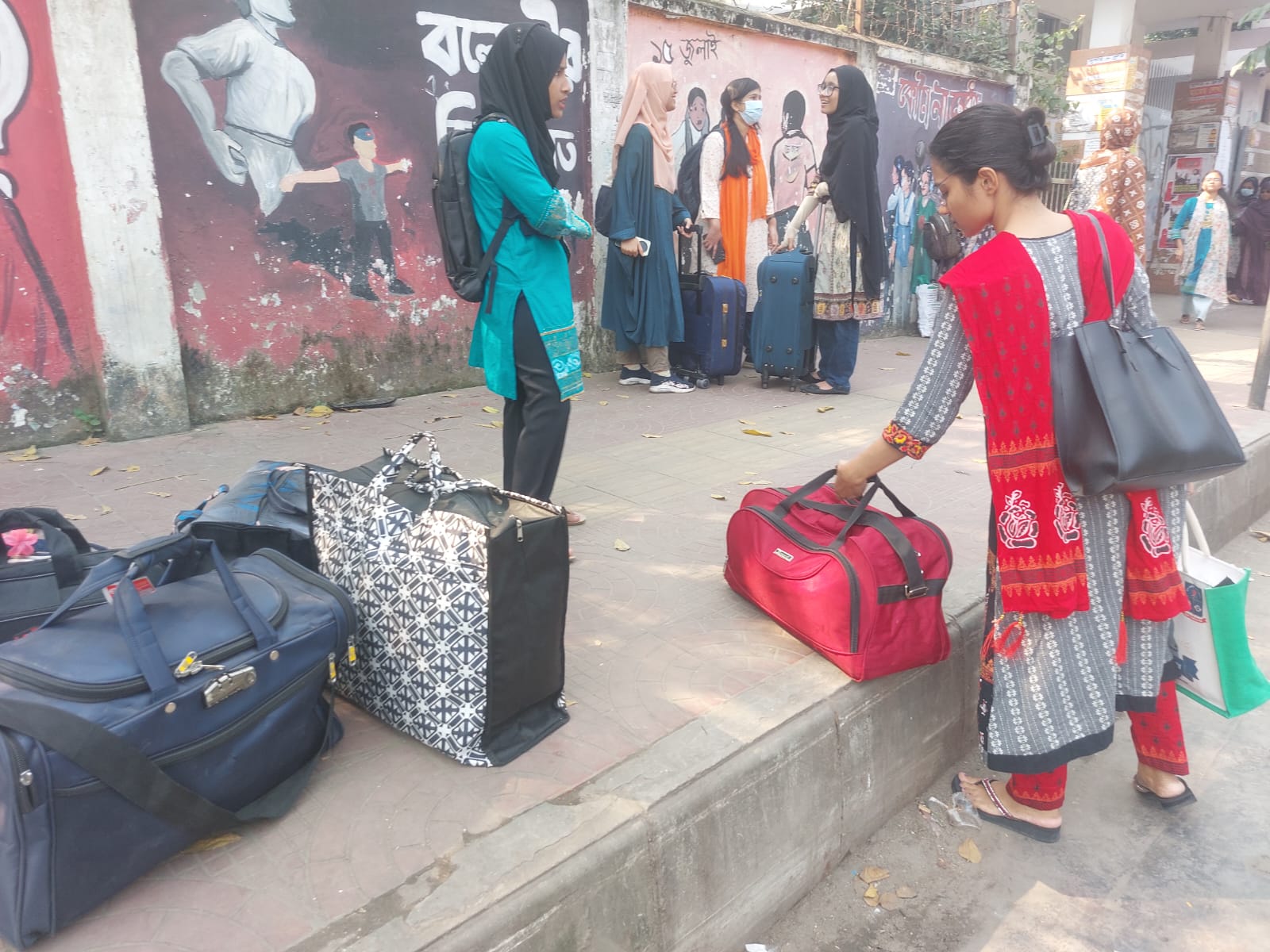 হল ছাড়ছেন ঢাকা বিশ্ববিদ্যালয়ের রোকেয়া হলের শিক্ষার্থীরা।