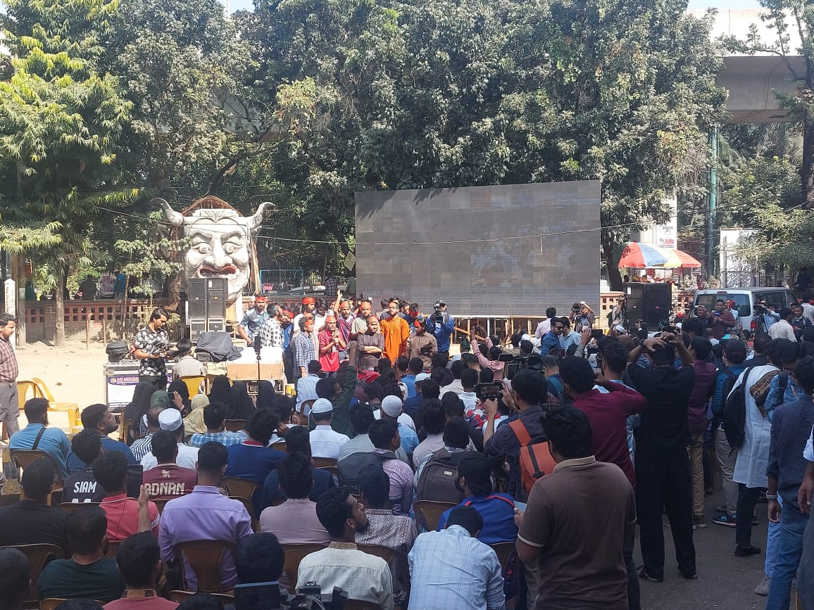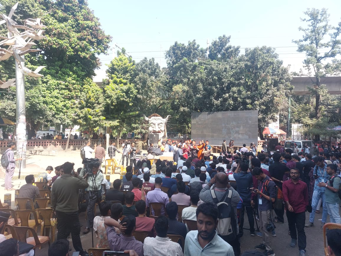 শেখ হাসিনার মামলার রায় দেখতে টিএসসিতে ছাত্র-জনতার ভিড়